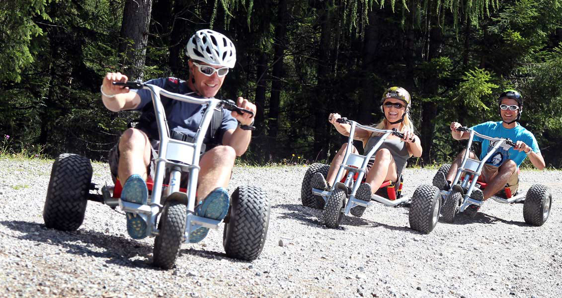 Schon mal mit dem Gocart die Berge runter gedriftet? Mit den Mountaincarts kein Problem. Seit 2016 gibt es an der Stümpfling Bahn eine 3.5 km lange Mountaincart Strecke. Die Mountain Carts haben 3 Räder und sind mit modernen hydraulischen Scheibenbremsen ausgestattet. Durch Ihr niedrige Bausweise liegen die Mountaincarts auf der Strcke wie ein Gokart. Gebaut werden die Mountaincart übrigens bayrischen Bad Aiblingen. Die Strecke ist von Mitte Mai bis zum Oktober (je nach Wetterlage) befahrbar. Wir sind die Strecke nun schon mehrmals gefahren und es ist jedes Mal ein großer Spass für uns.